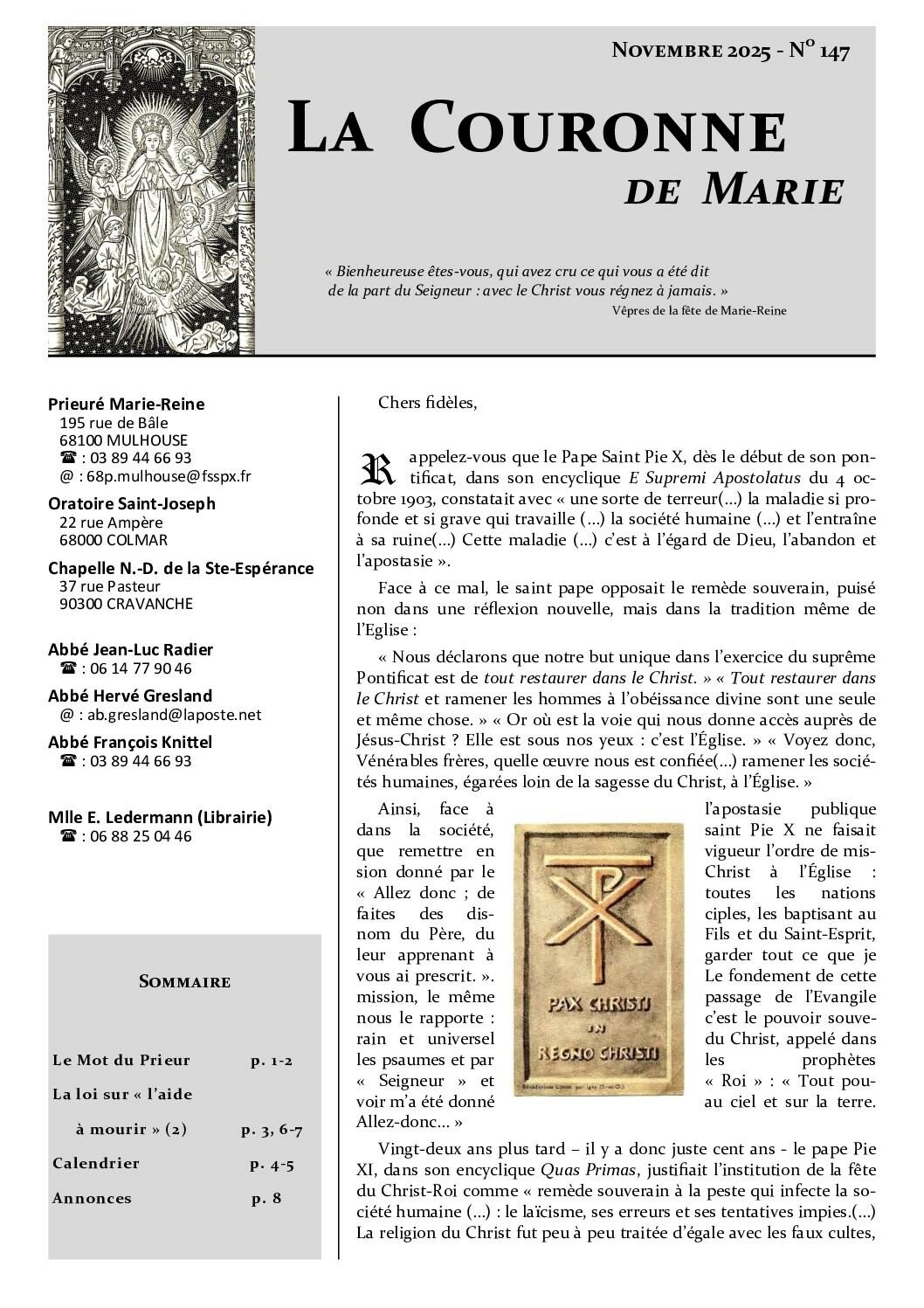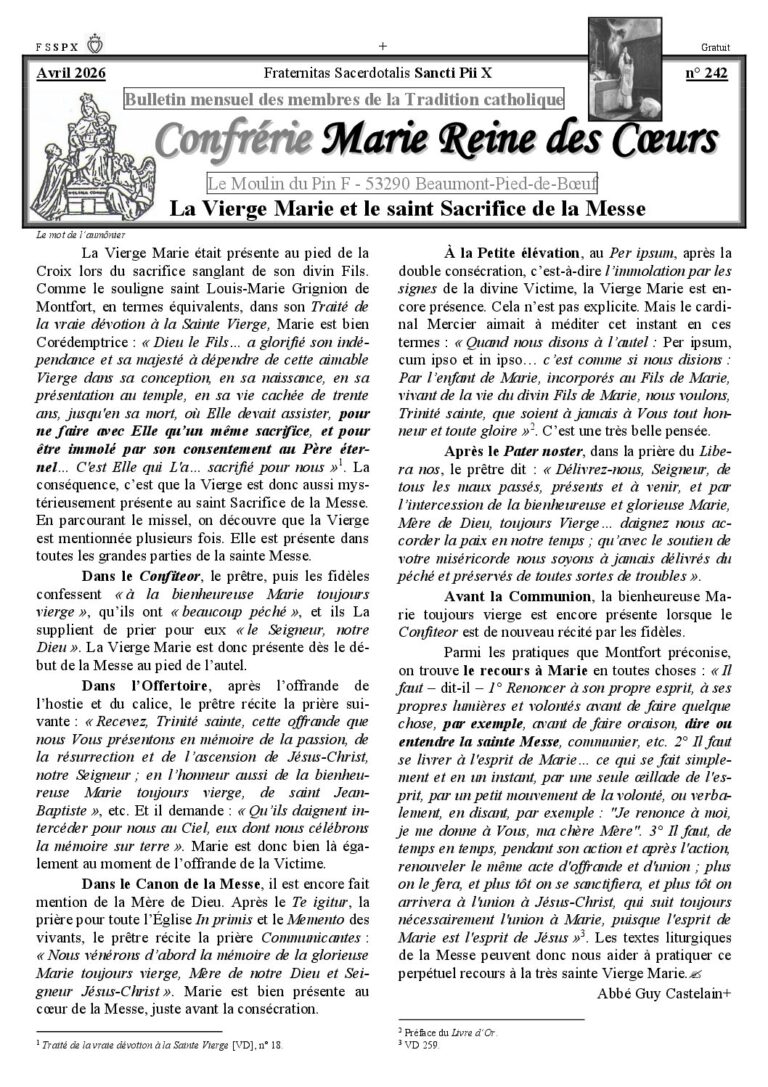 Bulletin de la Confrérie Marie Reine des Cœurs