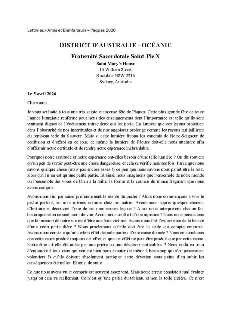 Lettre aux amis et bienfaiteurs de l’école Sainte-Jeanne-d’Arc