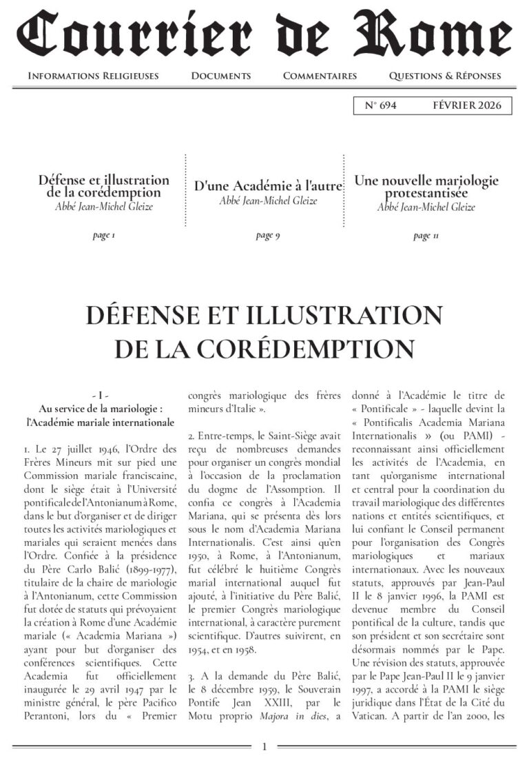 - Courrier de Rome, B.P. 10156, 78001 Versailles Cedex