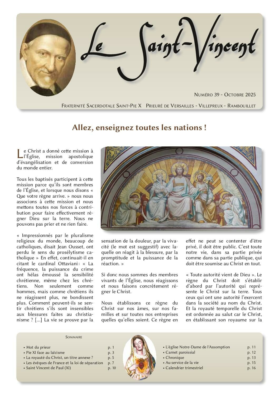Villepreux Prieuré Saint Vincent de Paul FSSPX District de France La Croix Notre-Dame, 2 Chemin de Grand’Maisons, 78450 Villepreux +33 9 50 75 91 08 (prieuré) [email protected]