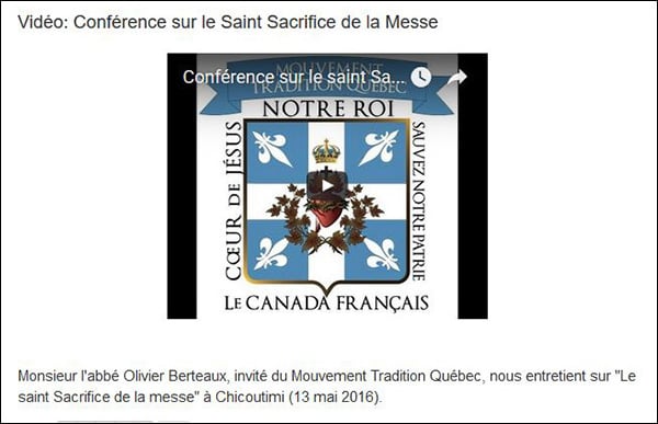 Vidéo produite le Mouvement Tradition Quebec