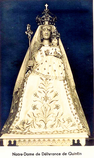 La population quintinaise répondit avec un admirable élan à l’exemple du don princier de cette noble famille : conseil municipal, Fabrique de l’église, propriétaires, commerçants, ouvriers, jusqu’aux plus pauvres habitants, tous voulurent apporter leur pierre au sanctuaire de Notre-Dame de Délivrance. La Vierge Marie a vu à ce moment du haut du ciel des actes d’amour et d’admirable générosité, qui suffiraient à eux seuls pour assurer à toujours sa bénédiction à notre cité.