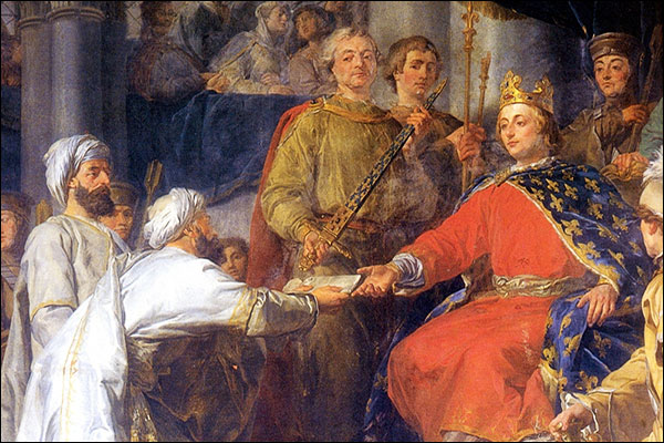 Illustration : Saint Louis, roi de France, recevant les ambassadeur du Prince des Assassins, par Guy-Nicolas Brenet
