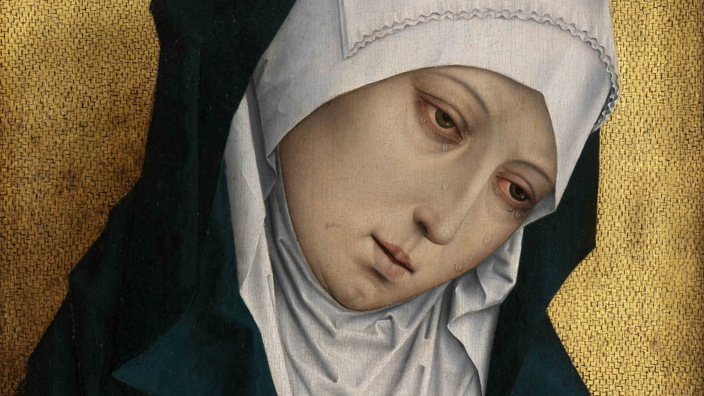 Les larmes de la Sainte Vierge ne sont mentionnées dans l’Evangile qu’une seule fois, lorsqu’elle prononce sa quatrième parole, après avoir retrouvé son Fils. Et c’est elle-même qui en parle à ce moment-là. Ailleurs, les évangélistes disent simplement que Jésus pleura, et cela doit nous suffire pour deviner ce que faisait sa Mère. Saint Bernardin de Sienne dit que la douleur de la Sainte Vierge a été si grande que si elle était divisée et partagée entre toutes les créatures capables de souffrir, celles-ci périraient à l’instant. Or, si l’on tient compte de la prodigieuse illumination de cette âme remplie de l’Esprit-Saint pour qui les choses futures avaient sans doute une réalité actuelle et sensible, il faut entendre cette affirmation, non seulement du Vendredi Saint, mais encore de tous les instants de sa vie, depuis la salutation de l’archange jusqu’à sa mort.