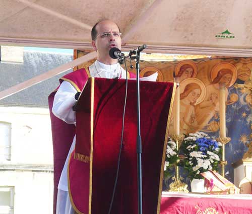 Chers pèlerins, voulons-nous, nous aussi, la victoire ? Voulons-nous vraiment, et non pas la tête dans les nuages d’un rêve impossible, la sainteté : individuelle, familiale, sociale, ecclésiale ? Il s’agit en tout premier lieu d’être victorieux sur nous-mêmes. Cultivons en nos âmes une vie intérieure profonde et authentique, un ardent amour de Dieu, dans l’oubli de nous-mêmes et une pureté absolue de toutes nos intentions. Chers pèlerins, ‘faites le siège’ de vos prêtres qui marcheront durant ces trois jours à vos côtés. Demandez-leur de vous entendre en confession. Que les prêtres ne soient jamais seuls sur le chemin, si ce n’est pour prier leur bréviaire ou égréner leur rosaire. Les prêtres seront alors aussi sollicités que ceux du temps de Jeanne. Ils côtoyaient sans cesse les soldats qui, durs à la peine mais jusqu’à présent loin de Dieu, ou l’ayant oublié, s’agenouillaient et partaient au combat l’âme purifiée. « On ne saurait trop nettoyer sa conscience », nous enseigne Jeanne.