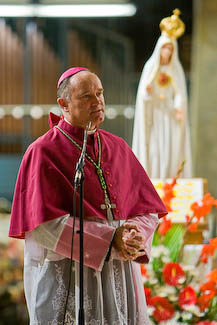 Si nous sommes ici, c’est bien sûr pour célébrer l’anniversaire des 150 ans des apparitions de Notre Dame, mes bien chers frères, mais nous sommes aussi ici pour un autre anniversaire que nous considérons comme intimement lié à Notre Dame, parce que nous y voyons sa protection particulière. Cet anniversaire, ce sont les vingt ans des consécrations épiscopales. Et nous osons dire que nous y voyons comme un miracle. Oui, un miracle que vingt ans après nous soyons là, que nous soyons là sans avoir changé de cap, malgré une tourmente extrêmement difficile, délicate où la ligne de conduite est comme le fil d’un rasoir, où il est si facile de tomber soit à droite, soit à gauche. Humainement, un faux pas va presque de soi. Maintenir ce cap signifie une protection toute spéciale que nous osons attribuer à Notre Dame. Un autre signe de cette protection est dans le fait que les quatre évêques consacrés, il y a vingt ans, soient tous ici, non seulement bien vivants, mais unis ; unis dans le même combat, malgré tous les prophètes de malheur qui prédisaient, il y a déjà vingt ans, toutes sortes de divisions. Eh bien non ! ils sont là, et c’est une grande grâce du Ciel dont nous remercions la Très Sainte Vierge. Et pendant ces jours, certainement, nous voulons élever vers Notre Dame un grand élan de gratitude pour ces sacres, pour toute la protection que cela a pu procurer au mouvement de la Tradition catholique. Bien évidemment, nous supplions le Ciel, nous supplions la Sainte Vierge qu’elle nous maintienne dans cette ligne de fidélité à la foi, de fidélité à l’Eglise.