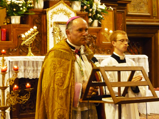 Nous sommes ici pour accomplir le vœu du roi Louis XIII. On pourrait dire que plus que jamais il nous faut essayer d’accomplir ce vœu pas seulement par une procession, pas seulement lors d’une acclamation de la T. S. Vierge Marie par laquelle nous la reconnaissons comme notre reine et notre mère, mais en la faisant entrer vraiment dans nos vies personnelles, familiales et sociales. Plus que jamais nous devons vivre dans cette intimité avec la Très Sainte Vierge Marie, plus que jamais nous avons besoin de son patronage, de sa protection.