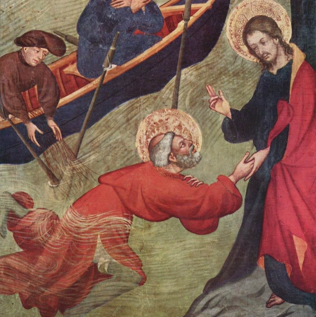 Au début, la foi des apôtres n’était pas ainsi. Quand ils s’enfonçaient dans les vagues, ils tremblaient en criant : « Seigneur sauvez-nous, nous périssons » et Notre-Seigneur de répondre « Pourquoi craignez-vous, hommes de peu de foi ? » (Mt VII, 25–26). Sans aucun doute ils avaient la foi en Jésus- Christ, on le voit dans le fait qu’ils l’invoquaient, mais leur foi était quand même vacillante.