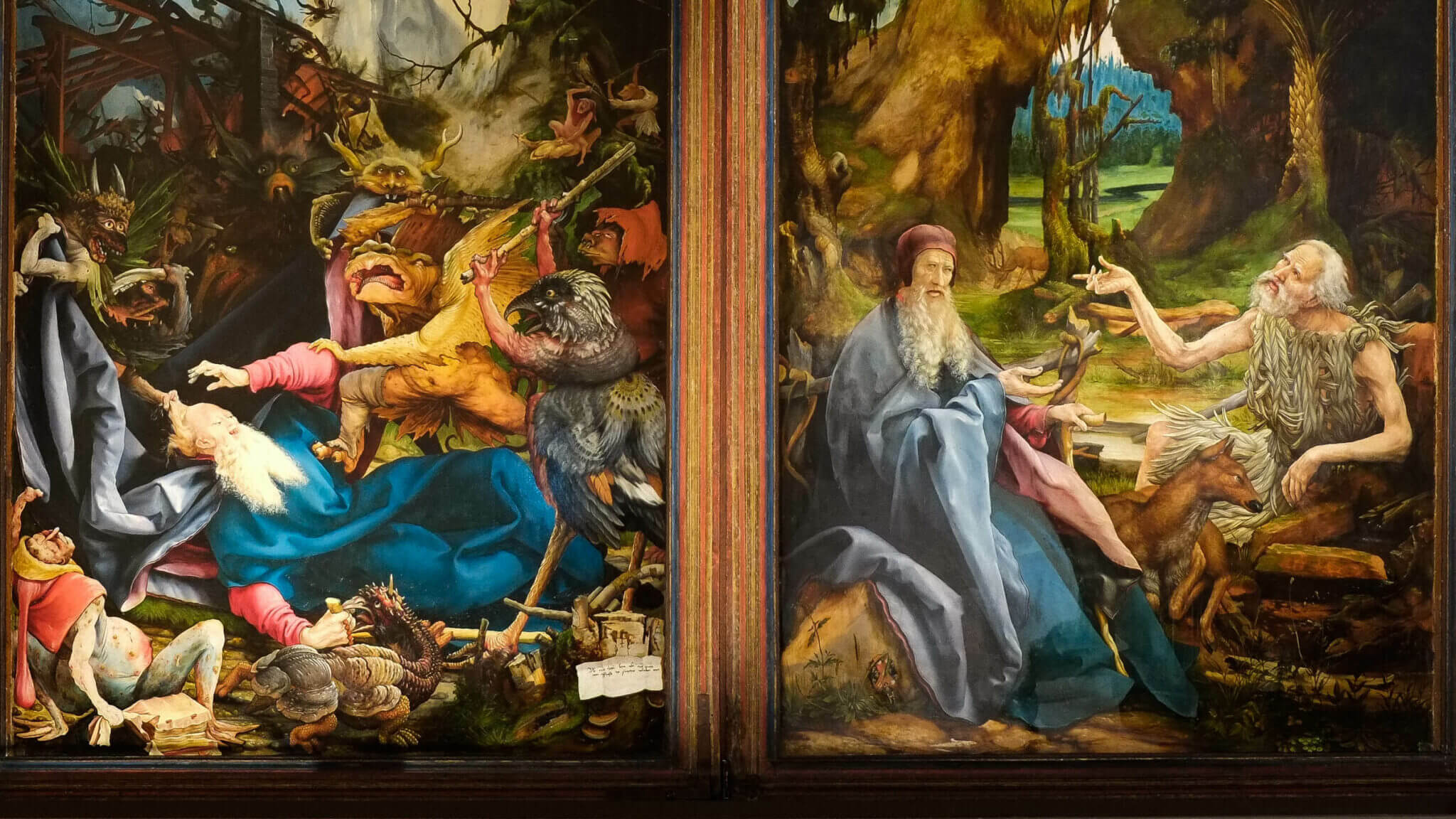 Antoine, peu rassuré sur la valeur de cette canonisation anticipée, demande au nain de décliner son nom, et, apprenant que c’était l’esprit de fornication, il le fait disparaître subitement en prononçant un texte des psaumes.