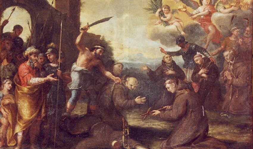 Parmi ceux-ci, l’histoire mentionne expressément un jeune Chanoine régulier du couvent de Sainte-Croix, Fernand de Bouillon, qui entrera chez les Frères Mineurs et y deviendra illustre sous le nom d’Antoine de Padoue. Comme saint François, lui aussi ne sera martyr que par le désir, mais Dieu réserva l’honneur insigne de verser leur sang pour lui à d’autres religieux de l’Ordre franciscain dont un groupe que l’Église honore comme saints : Daniel et six autres Frères Mineurs, nommés Ange, Samuel, Domne ou Domnule (le seul qui ne fût pas prêtre), Léon, Nicolas et Hugolin.