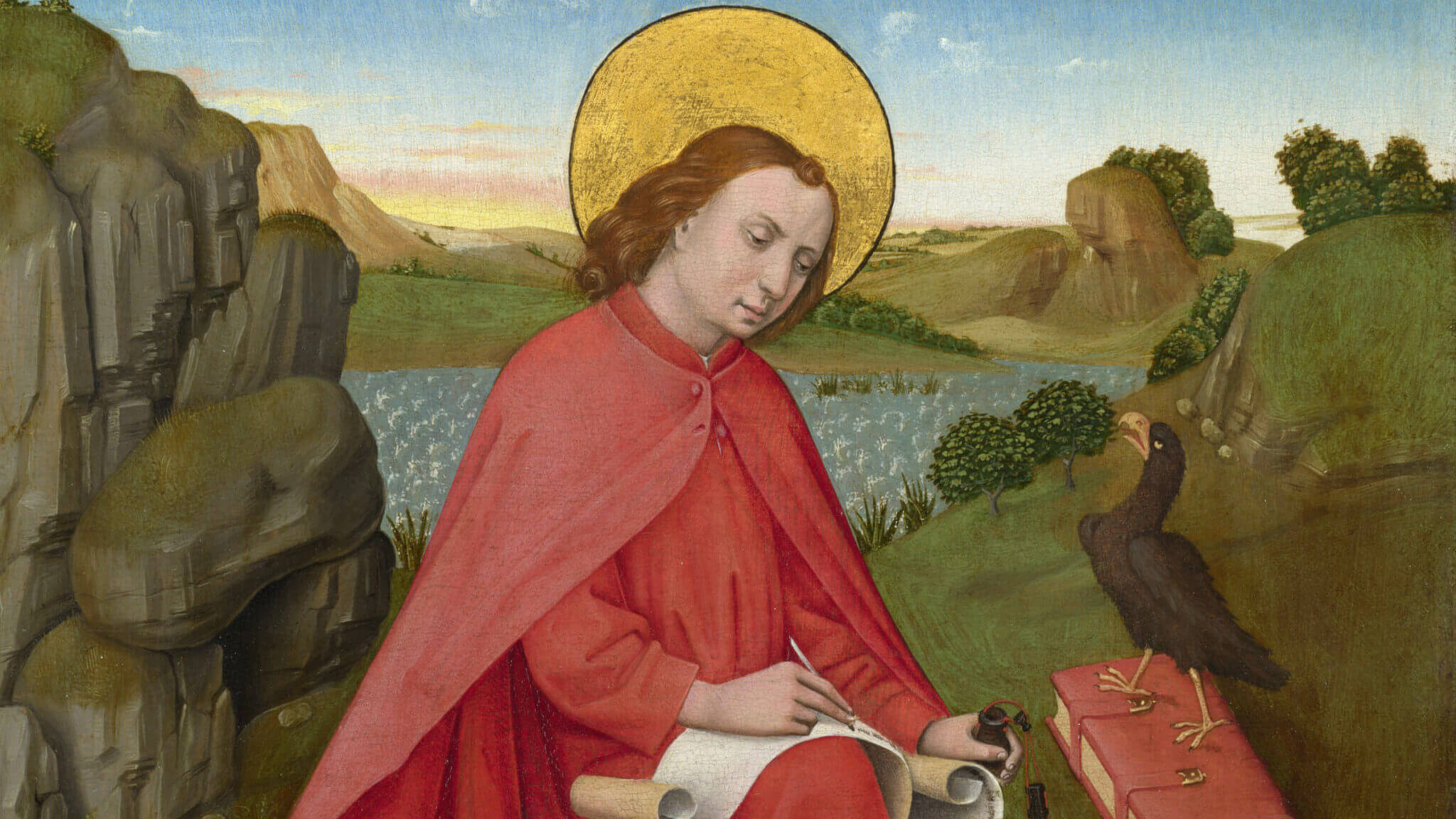 Or, les disciples pressaient leur Père dans la foi, avec de longues instances, de leur laisser par écrit ce qu’il enseignait touchant la personne de Notre-Seigneur. L’apôtre les invita à un jeûne et une prière de trois jours. Durant ce temps, une vision lui ordonna d’accéder aux vœux des frères. Il écrivit alors son Evangile, le dernier selon l’ordre chronologique, le premier par la grandeur et la sublimité du récit, d’une importance telle, par la lumière éclatante de ses aperçus théologiques, que les ennemis du catholicisme se sont efforcés avec passion, notamment au début du xxe siècle, d’en démontrer, mais en vain, la non-authenticité.