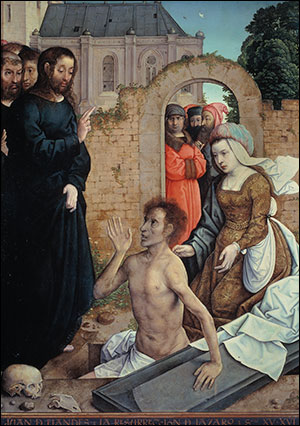 Ainsi, les autres Evangiles rapportent que Jésus et ses apôtres furent reçus dans différentes propriétés de la fratrie de Lazare, sans le nommer, tant en Galilée qu’à Béthanie près de Jérusalem. En effet, dans l’Evangile selon saint Jean, Jésus dit à ses disciples, deux jours après l’annonce, par quelque messager, de la maladie de Lazare : « Lazare, notre ami, dort ; mais je vais le tirer de son sommeil ». Lazare était à Béthanie, tandis que Jésus avait quitté Jérusalem, où les juifs voulaient le tuer, pour séjourner à l’autre Béthanie[2], de l’autre côté du Jourdain. La maladie puis la mort de Lazare furent l’occasion pour Notre Sauveur de retourner vers Jérusalem afin de s’y livrer aux juifs. Ainsi, Jésus ajouta : « Retournons en Judée ». Les disciples comprirent la parole de Jésus, « Lazare dort », au premier degré, « alors Jésus leur dit clairement : Lazare est mort ». Ils allèrent donc de Béthanie à Béthanie, de Transjordanie en Judée. A l’approche du bourg, accueilli par Marie-Madeleine et les Juifs qui pleuraient avec elle, « Jésus frémit en son esprit, et se troubla[3] lui-même… Et Jésus pleura. Et les Juifs dirent : Voyez comme il l’aimait ! Mais quelques-uns d’entre eux dirent : Ne pouvait-il pas, lui qui a ouvert les yeux d’un aveugle-né[4], faire que celui-ci ne mourût point ? Jésus donc frémissant de nouveau en lui-même, vint au sépulcre » de Lazare. « Jésus dit : Ôtez la pierre. Marthe lui dit : Seigneur, il sent déjà mauvais, car il est de quatre jours ». Après avoir prié le Père, Jésus « cria d’une voix forte : Lazare, sors ! Et aussitôt sortit celui qui avait été mort, lié aux pieds et aux mains de bandelettes, et le visage enveloppé d’un suaire. Jésus leur dit : Déliez-le… »