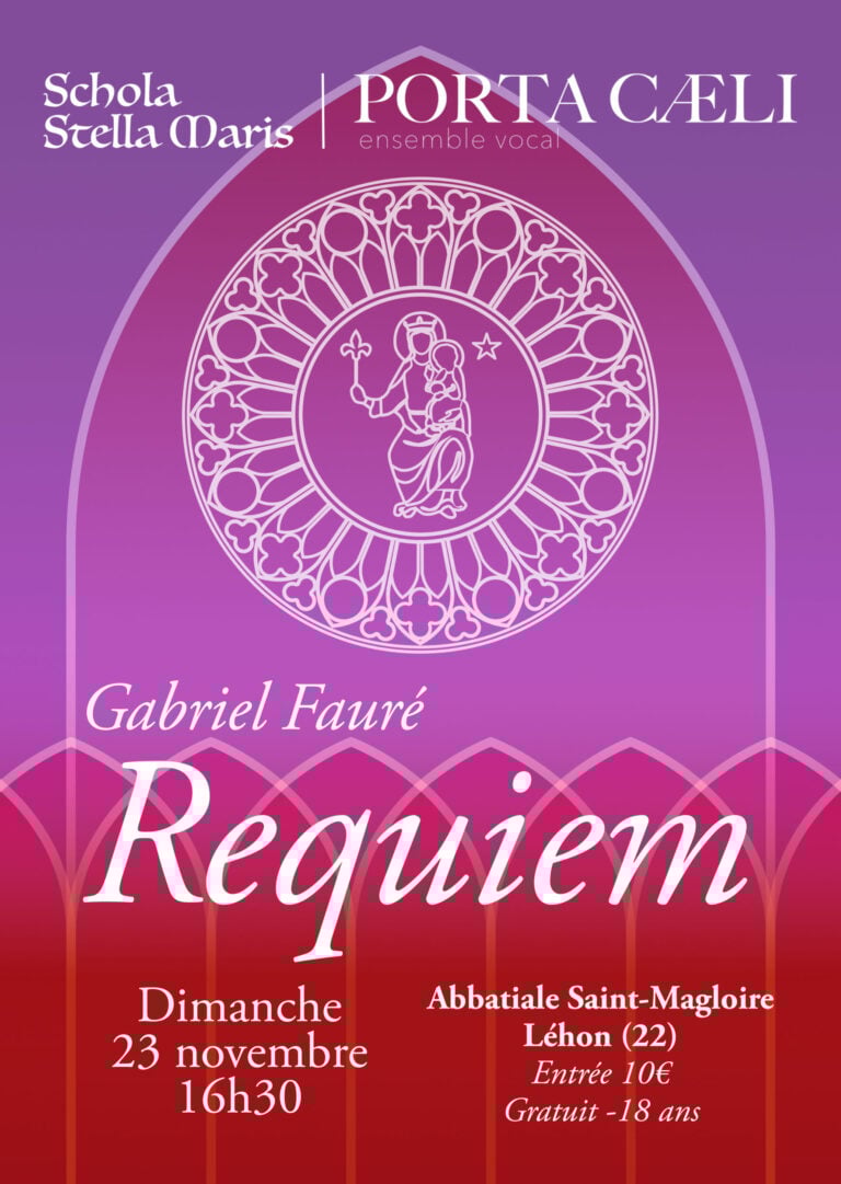 L'ensemble vocal Porta Caeli vous convie le dimanche 23 novembre, à 16h30 à l'abbatiale Saint-Magloire pour une interprétation du Requiem de Fauré.